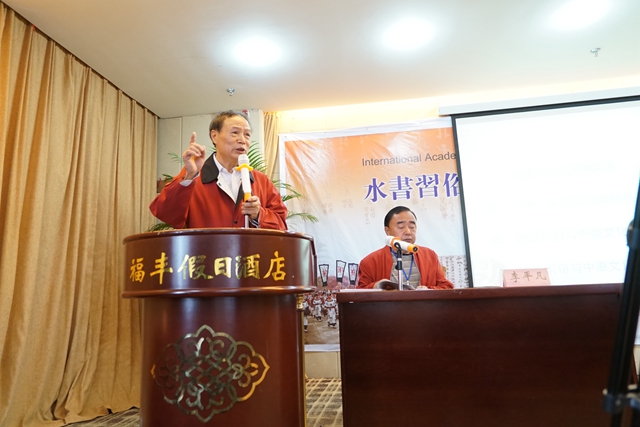 贵州省水家学会会长胡品荣最后发言。他认为水书习俗与殷商文化国际学术研讨会规模大、层次高、成效好,是水书文化最成功的一次研讨会。