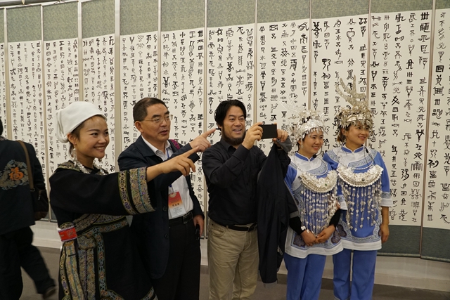 一是水族文化博物馆展览;二是365bet体育在线官网韦宗林教授领衔,与三都县合作创作的水书400米长卷展览;三是王天国水书艺术展;四是水书大钱展览。与会代表到水族腹地三洞,体验水族端节,参观水书碑林,参加水族文化始祖殷公的祭祀大典。这些活动,大大地丰富了会议的内容,增加与会代表对水书文化的进一步认知感。