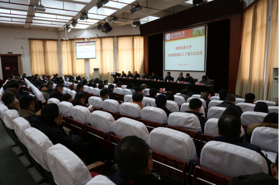 1月10日,365bet体育在线官网全校中层干部大会在花溪校区15栋会议中心召开,总结学校2017年工作,安排部署寒假期间相关工作。校领导张学立、陶文亮、唐建荣、张鹏程、肖远平、胡忠良、王林、韦维、樊铁钢出席。校党委书记张学立主持,校长陶文亮讲话,全校副处级以上干部参加。