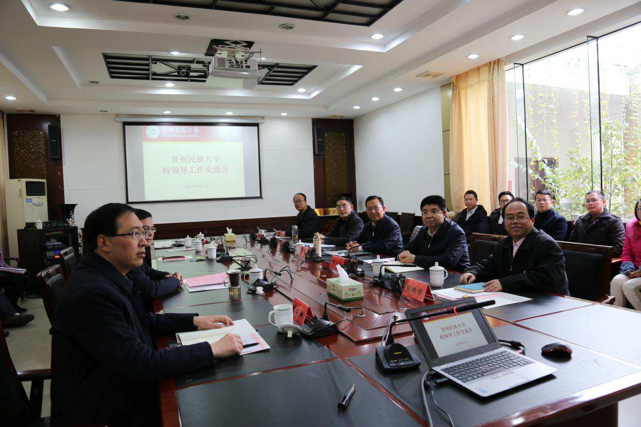 1月11日,365bet体育在线官网在花溪校区行政楼第一会议室举行校领导工作交流汇报会。总结2017年各自分管工作的成绩和经验,分析问题,谋划2018年各项工作的思路和目标。校党委书记张学立作总结讲话,校长陶文亮主持交流会。校领导唐建荣、张鹏程、肖远平、胡忠良、王林、韦维、樊铁钢出席,相关职能部门主要负责同志参加。